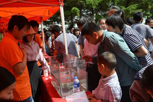 在室外展示區,“材料學認知”、“神奇的新材料”、“材料與美麗中國”、“材料是人類文明進步階梯”等展區不僅介紹了材料科普知識,也以生動活潑的形式向社會公眾展示了金屬所3D打印、新型凈水材料、抗菌不銹鋼材料、先進炭材料、磁性材料、陶瓷材料、熱電材料、仿生材料、光催化材料、涂層材料、可溶解鋁合金等科研成果,展臺前人頭攢動,熱鬧非凡。最具人氣的材料學科普知識有獎問答環節吸引了大批參與者,大家爭先恐后地搶答問題,現場氣氛十分熱烈。