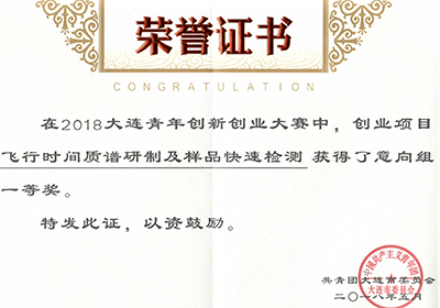 由中國科學院大連化學物理研究所快速分析與檢測研究組(102組)組織的“飛行時間質譜研制及樣品快速檢測”項目,經大連化物所國家雙創示范基地推薦,先后通過海選、初賽、路演等環節,從全市200余個參賽項目中脫穎而出,獲得意向組一等獎,并將作為推薦項目參與2018年第三屆“中國創翼”創業創新大賽。