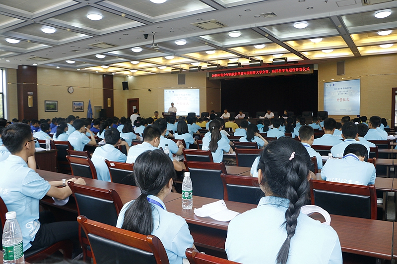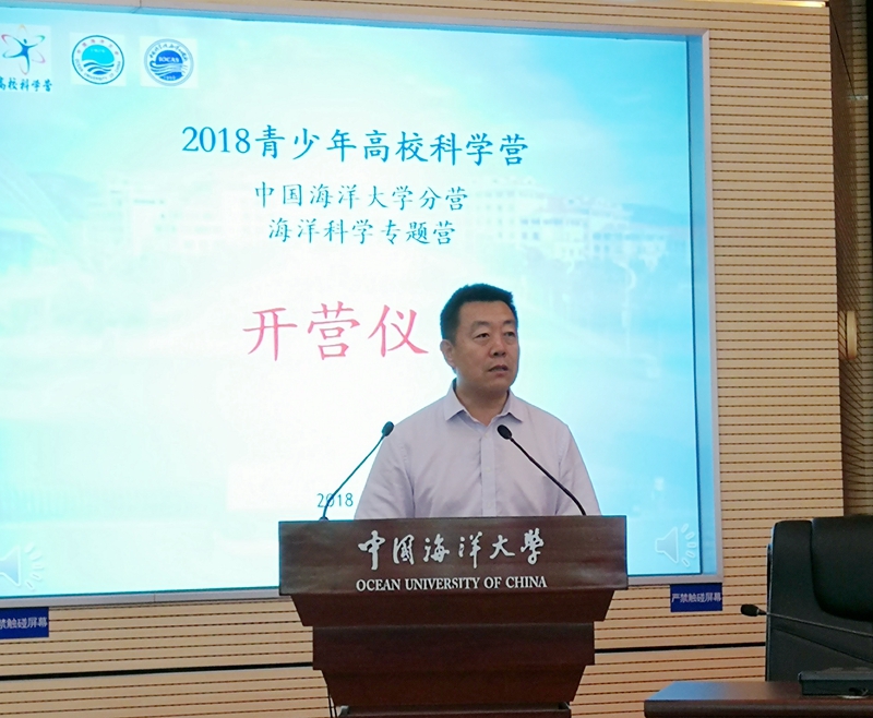 7月19日上午,2018年青少年高校科學營海洋科學專題營、中國海洋大學分營開營儀式在中國海洋大學嶗山校區舉行。中國科學院海洋研究所黨委副書記、紀委書記畢偉,中國海洋大學副校長李巍然,青島市科學技術協會副主席王崇江等出席開營儀式。儀式由中國海洋大學團委書記王雪鵬主持,來自全國各地的200余名營員及帶隊老師參加了開營儀式。