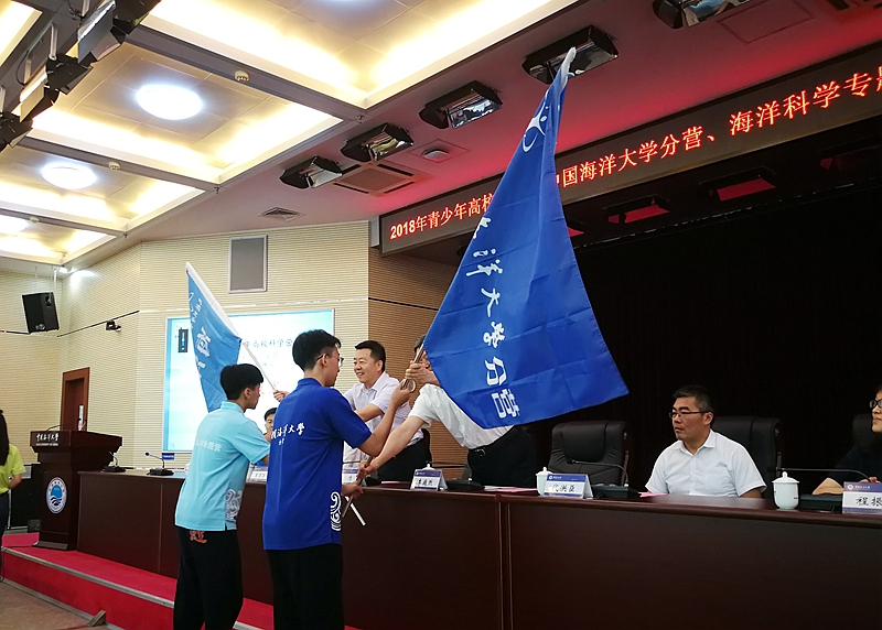 畢偉、李巍然為海洋科學專題營、中國海洋大學分營營員代表授旗