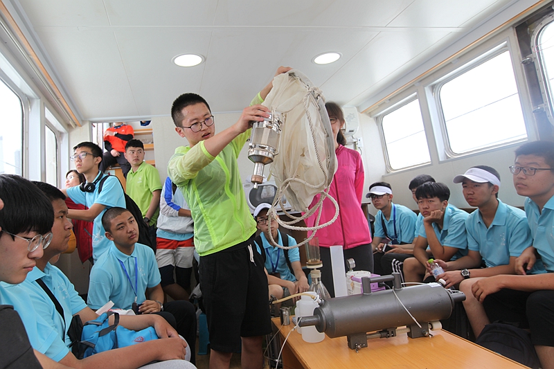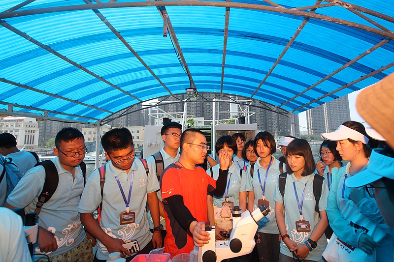 海上科學考察實踐活動共分四個板塊,分別是乘坐“創新”號科考船進行海上調查作業,在碼頭停靠的“海鷗”號科考船上開展浮游植物與富營養化、浮游動物與海洋生態系統食物鏈、食物網以及海洋污損生物知識講解。