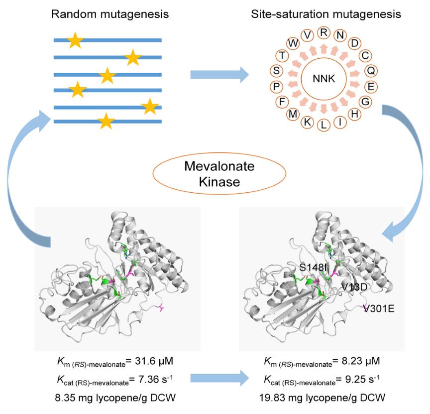 圖1. 代謝限制性位點MK的定向進(jìn)化策略和效果圖