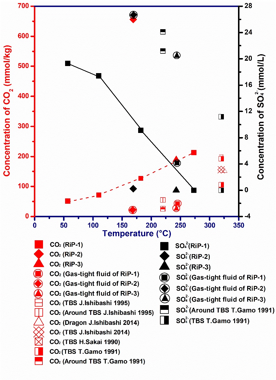 (紅色符號代表二氧化碳,黑色符號代表硫酸根)