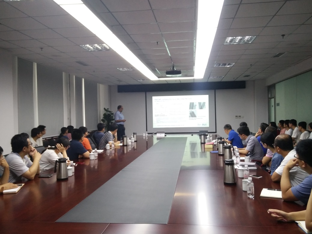Muhler教授的學術報告題為“Supported Pd and Pt catalysts applied in hydrogenation and oxidation”。報告中,Muhler教授先是簡要介紹波鴻魯爾大學的歷史和發(fā)展現(xiàn)狀,之后從碳納米管的特點和催化劑的制備出發(fā),深入淺出的、系統(tǒng)的介紹了近年來其課題組在碳納米管用于催化烯烴選擇性加氫和乙醇催化氧化等反應方面的研究工作,包括碳納米管的表面改性、高分散貴金屬催化劑的制備方法、催化劑的表征及動力學研究等內(nèi)容。其間,Muhler教授結合多種表征方法、反應數(shù)據(jù)及分子模擬手段,對不同反應物的催化轉(zhuǎn)化過程以及碳納米管在上述反應體系中的作用進行了分析和說明。報告結束后,與參會的科研人員及學生們就相關具體問題展開了深入的交流,提出了許多新穎的觀點。
