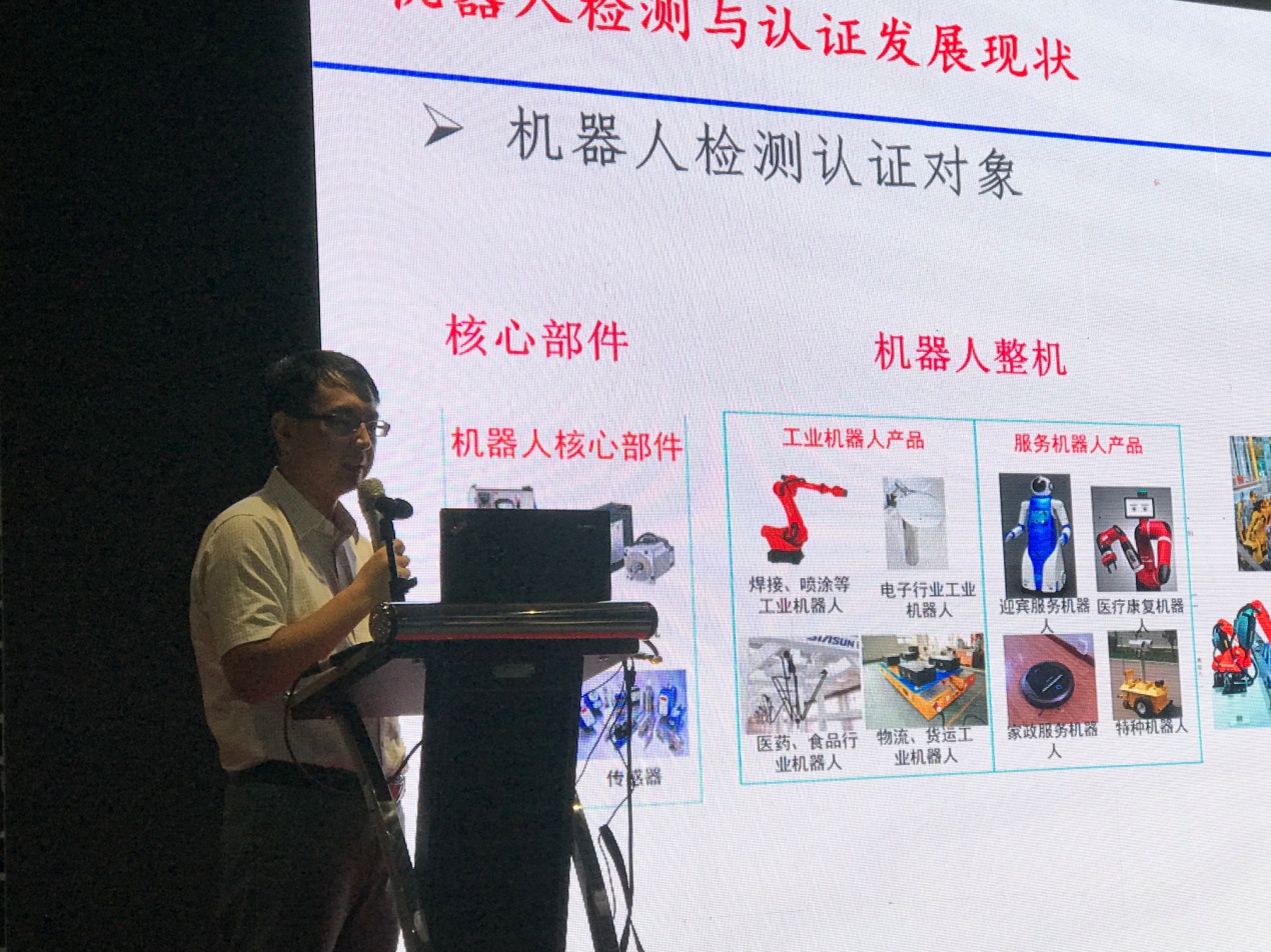 中國科學院沈陽自動化研究所多位專家在會上作專題報告。國家機器人標準化總體組秘書長、IEEE機器人與自動化學會副主席、沈陽自動化所機器人研究室主任劉連慶作了題為《我國機器人產業現狀及國際機器人標準發展動態》的主題報告;沈陽自動化所裝備制造技術研究室副主任徐志剛作了題為《機器人與智能制造產業升級發展趨勢》主題報告;檢驗檢測認證中心技術總監李志海作了題為《機器人產品檢測認證及檢測方法研究與實踐》主題報告。