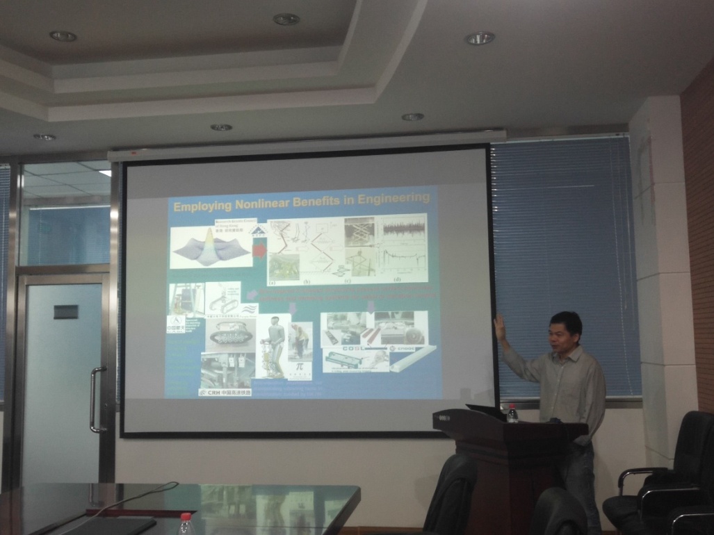 在報(bào)告中,景興建首先詳細(xì)介紹了各種非線性分析的理論方法,列舉了非線性分析在故障診斷、系統(tǒng)辨識以及減震等方面的具體應(yīng)用,包括用絕對穩(wěn)定性理論進(jìn)行非線性分析等。隨后,景興建介紹了他在仿生結(jié)構(gòu)方面的研究成果,研制的仿骨骼結(jié)構(gòu)阻尼減震系統(tǒng)已經(jīng)進(jìn)行大量的理論和實(shí)用研究,在多個(gè)方面具有應(yīng)用前景。最后,景興建就如何發(fā)表高水平論文進(jìn)行了講解,他強(qiáng)調(diào)理論創(chuàng)新和研究深度是發(fā)表論文的兩大重要因素,勉勵大家勤于思考,培養(yǎng)創(chuàng)新能力。他分享了自己的親身經(jīng)歷,引發(fā)了與會人員的共鳴,并進(jìn)行了現(xiàn)場交流。