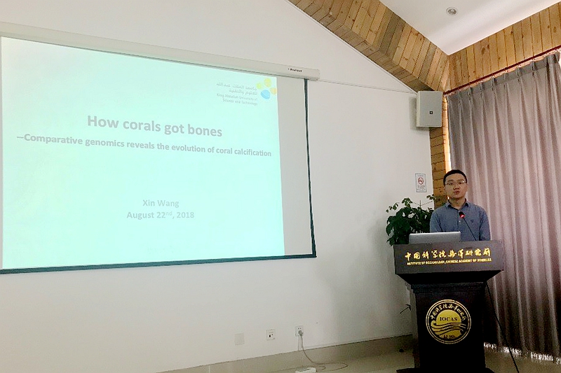 來自阿卜杜拉國王科技大學海洋生物專業在讀博士研究生王鑫做了題為“比較基因組揭秘珊瑚鈣化進化機理”的學術報告,介紹了自己在Platygyra daedalea 基因組耐高溫機制、珊瑚鈣化機制以及珊瑚共生體Symbiodinium microadriaticum 反轉座子熱激擴增等方面的研究進展。