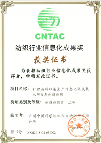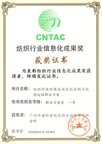 9月14日,在2018年中國紡織行業兩化融合大會上,由廣州中國科學院沈陽自動化研究所分所(以下簡稱廣州分所)開發的“紡織印染環保設施優化控制與遠程運維解決方案”和“針織面料印染生產信息化集成技術研發與創新應用”項目分別獲得紡織行業信息化成果獎解決方案獎一等獎和創新應用獎二等獎,廣州分所所長助理、智能工廠技術研發中心主任于廣平參會領獎。