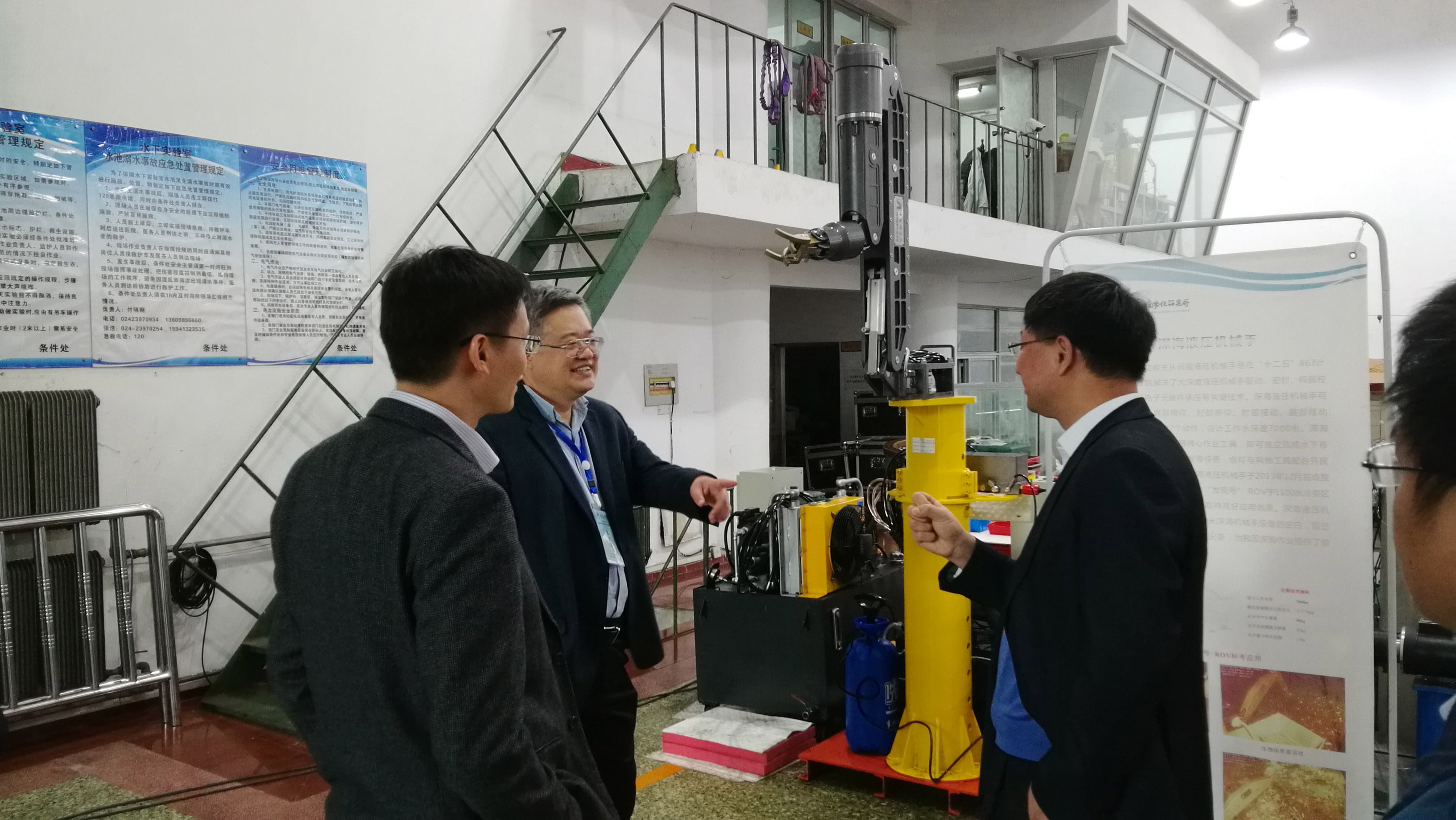 張希一行參觀了沈陽自動化所機器人學國家重點實驗室、水下條件實驗室和研究所科技成果展館等。于海斌介紹了沈陽自動化所的總體概況和近期科研進展。劉連慶作了國家重點實驗室科研工作報告。
