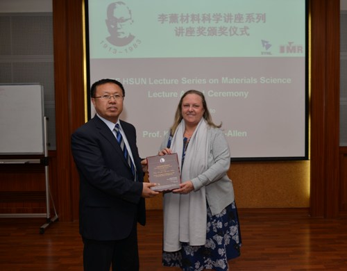 張哲峰副所長代表金屬所為K. Jane Grande-Allen教授頒發李薰講座獎獎牌