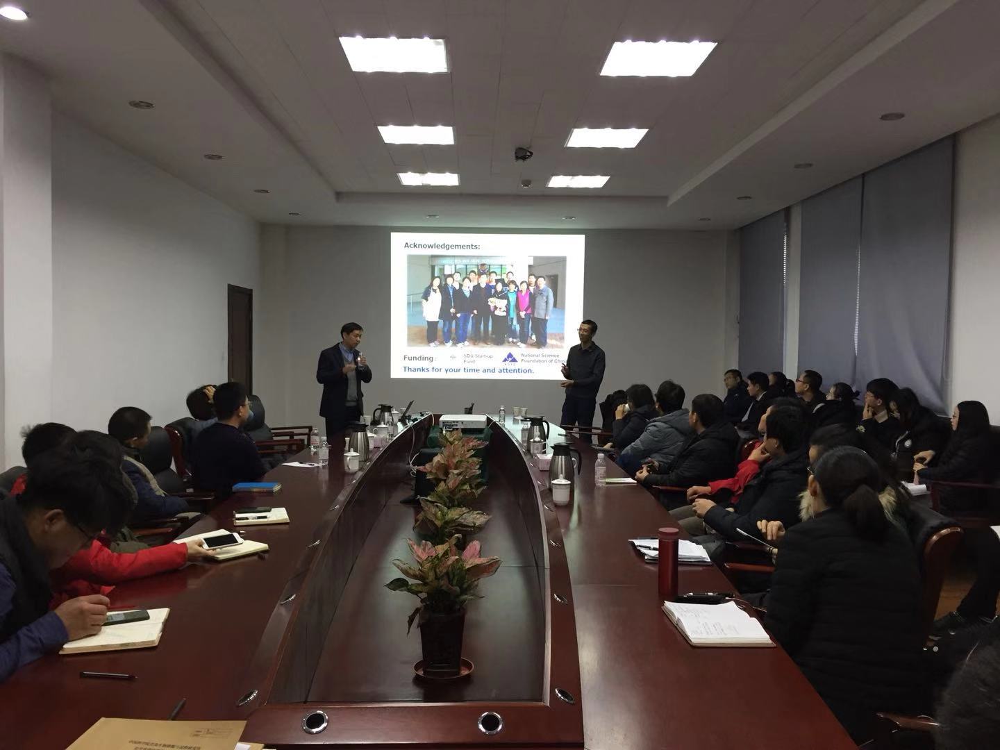 譚保才詳細講解了玉米Mutator轉座子突變體的構建及在玉米籽粒發育調控機制解析中的重要用途,介紹了該團隊目前在研的玉米胚和胚乳突變體的表型及其內在分子調控機制。他們通過多個深入的研究工作,闡釋了上述基因在調控玉米質體基因的編輯和內含子剪接過程中的重要功能。譚保才還分享了其在ABA和類胡蘿卜素合成調控方面的研究進展,并就玉米Mu突變體獲得及其穩定性、Mutator轉座子原理、線粒體基因編輯等問題與參會人員進行了深入的探討和交流。參會人員一致認為,整場報告深入淺出,內容豐富生動,既拓寬了科研工作者和研究生的研究視野,又給予了深刻的啟迪。報告結束后譚保才在付春祥和李勝軍的陪同下參觀了研究所展廳,詳細了解了研究所的建設歷程和發展情況。