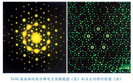 五次對(duì)稱性及Ti-Ni準(zhǔn)晶相的發(fā)現(xiàn):1984年,我所在鈦鎳釩急冷合金中發(fā)現(xiàn)具有5次對(duì)稱的二十面體準(zhǔn)晶,有力地論證了準(zhǔn)晶的存在,打破了固體材料傳統(tǒng)的晶體和非晶體分類標(biāo)準(zhǔn),為物質(zhì)微觀結(jié)構(gòu)及材料研究打開(kāi)了全新的研究領(lǐng)域。獲1987年度國(guó)家自然科學(xué)獎(jiǎng)一等獎(jiǎng)。該成果及后續(xù)有關(guān)研究工作為推動(dòng)航空航天準(zhǔn)晶熱障涂層、太陽(yáng)能選擇性吸收薄膜、準(zhǔn)晶復(fù)合材料、準(zhǔn)晶熱電材料等新材料研發(fā)及應(yīng)用積累了理論基礎(chǔ)。
