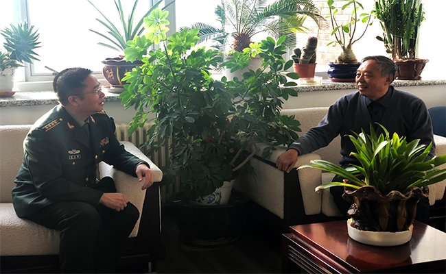1月16日,大連市委常委、大連軍分區政委陳道金來中國科學院大連化學物理研究生所慰問桑鳳亭院士。