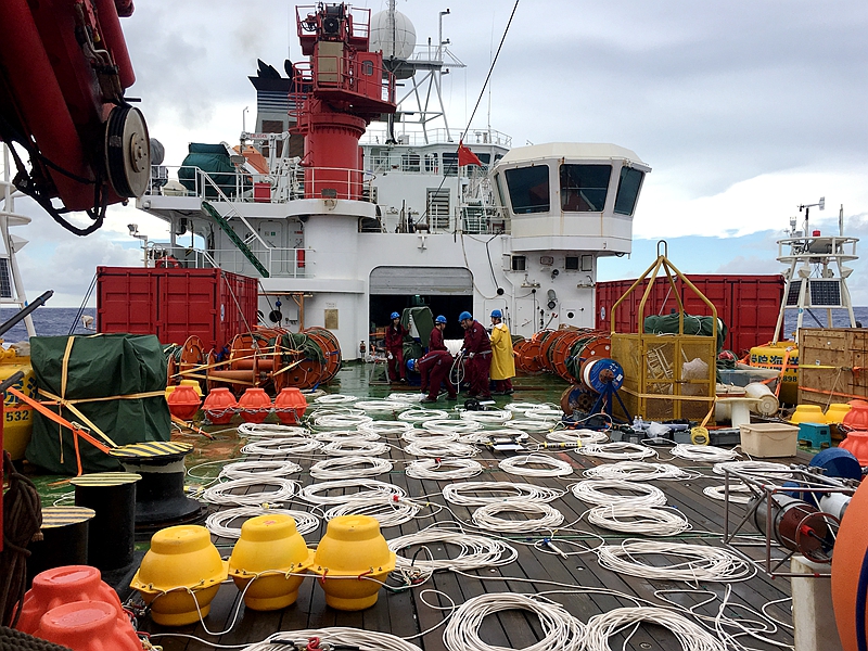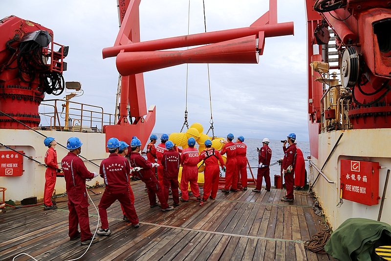 航次的另一項重大突破是融合感應耦合和水聲通信技術,首次實現了深海6000米大水深數據的實時傳輸,在大洋上層實現了每100米一個溫鹽流數據的實時傳輸,在大洋中深層實現每500米一個溫鹽流數據的實時傳輸。6000米深海數據北斗衛星實時通信潛標自布放以來已經安全運行了1個多月,數據回傳正常。