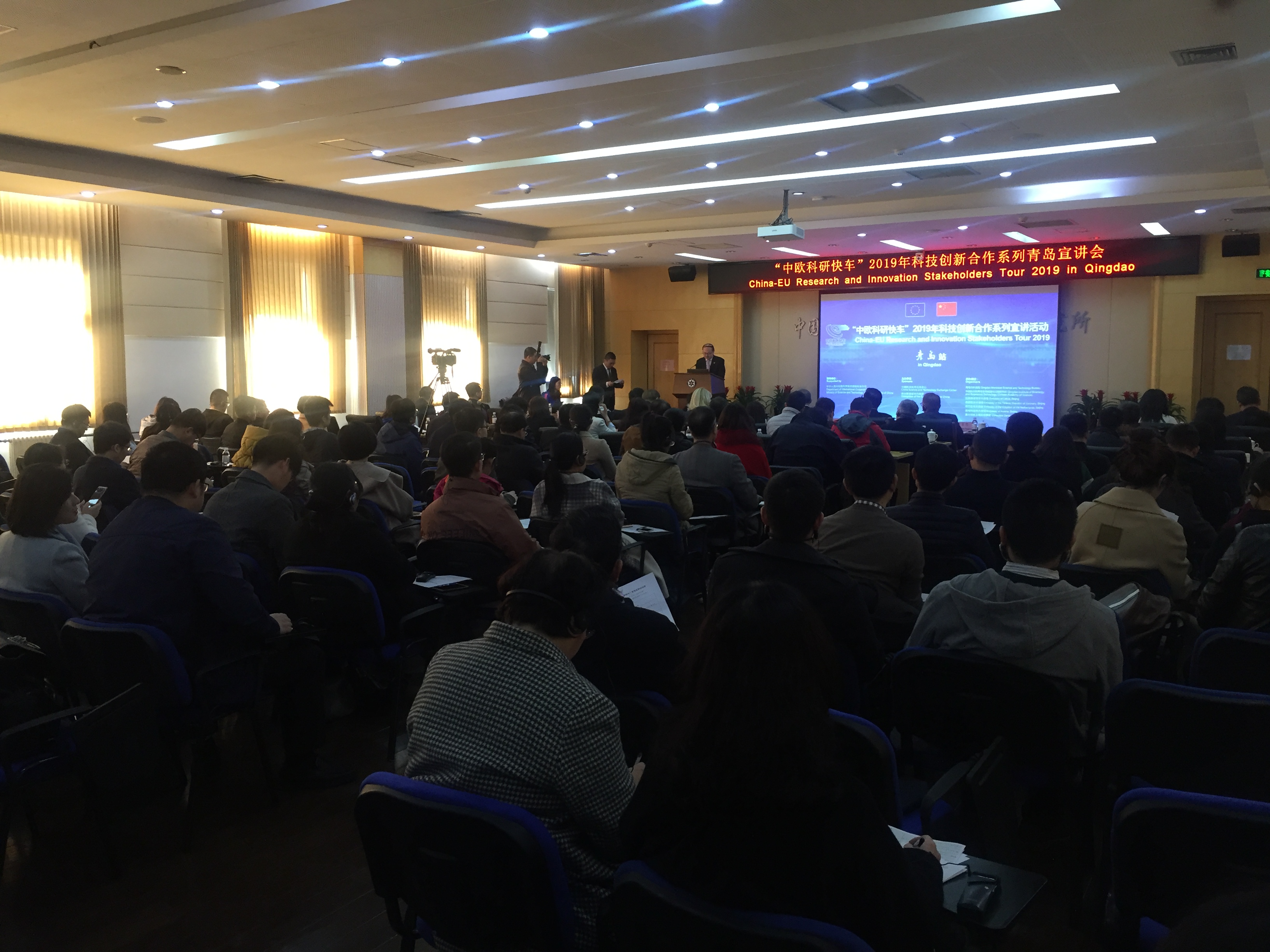 3月13日,2019年“中歐科研快車”科技政策宣講活動在青島能源所舉辦。本次活動由科技部國合司指導、中國科學技術交流中心和歐洲聯盟駐華代表團主辦,青島市科技局、青島能源所承辦,聯合承辦單位還有拉脫維亞駐華大使館、德國駐華大使館、奧地利駐華大使館、意大利駐上海總領事館。150余人現場了解了中歐各自科技政策和中歐科技合作的最新動態,讓全市科技工作者有機會搭上中歐科技合作的快車,進入高質量高水平的國際科技合作隊伍。 在下午舉行的駐青機構交流座談會上,研究所黨委書記彭輝代表研究所向嘉賓一行表示歡迎,并介紹了研究所的發展歷程和方向定位。副所長呂雪峰向客人一行介紹了研究所的整體情況和國際合作開展情況尤其是對歐合作進展和未來展望。黃海水產研究所、中車青島四方機車車輛股份有限公司相關代表分別介紹了對歐合作情況。座談會由科技處處長梁向峰主持。
