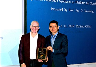 3月11日,美國國家工程院院士、美國藝術(shù)與科學(xué)學(xué)院院士、伯克利加州大學(xué)教授Jay D. Keasling應(yīng)中國科學(xué)院大連化學(xué)物理研究所研究員趙宗保邀請,來大連化物所作了題為“Engineered Polyketide Synthases as Platform for Synthetic Chemistry”的第三十一期張大煜講座報(bào)告。大連化物所副所長蔡睿、職能部門相關(guān)負(fù)責(zé)人,以及所內(nèi)外相關(guān)領(lǐng)域科研人員和研究生150余人到場聽取了報(bào)告。報(bào)告由趙宗保主持,蔡睿代表大連化物所向Keasling頒發(fā)了張大煜講座證書和大連化物所榮譽(yù)教授證書。
