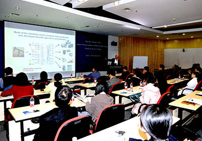 報(bào)告中,Keasling以化學(xué)品傳統(tǒng)生產(chǎn)工藝面臨化石資源短缺問題為切入點(diǎn),重點(diǎn)介紹了其研究團(tuán)隊(duì)用聚酮合酶系統(tǒng),合成特殊化學(xué)品的最新研究進(jìn)展: 型聚酮合酶由多個(gè)功能模塊組成,Keasling團(tuán)隊(duì)組合不同來源的功能模塊,設(shè)計(jì)新的聚酮合酶,拓展合成裝配線的底物譜,合成了系列特殊化學(xué)品。報(bào)告現(xiàn)場氣氛活躍,討論積極。