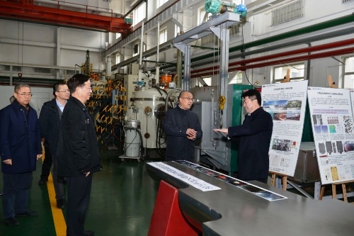 于英杰局長一行首先參觀了大型鑄鍛件和軸承鋼車間、鈦鋁合金車間、球差電鏡,隨后聽取了孫曉峰副所長作的重大科研進展和師昌緒先進材料創新中心進展報告及李殿中主任作的中科院C類先導專項方案報告。于英杰局長對我所取得的科研成果和為國家重要領域提供的技術支撐給予充分肯定,同時對金屬所師昌緒先進材料創新中心建設和C類先導專項方案準備給出了寶貴的意見與建議。
