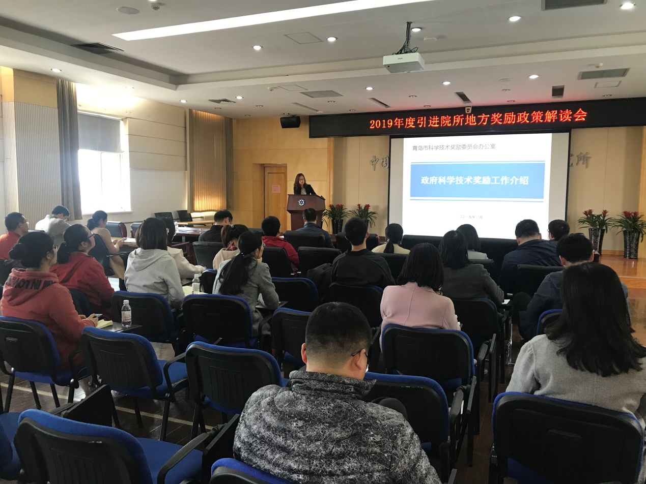 為促進駐青科研院所與地方融合發展,深入挖掘優秀成果順利參評地方獎勵,4月2日由青島市科學技術獎勵委員會辦公室主辦、青島能源所承辦的“2019年度青島市引進院所地方獎勵政策”專場解讀會在我所順利召開,來自青島市二十余家科研單位以及研究所各研究組相關人員共計50余人參加了本次會議。