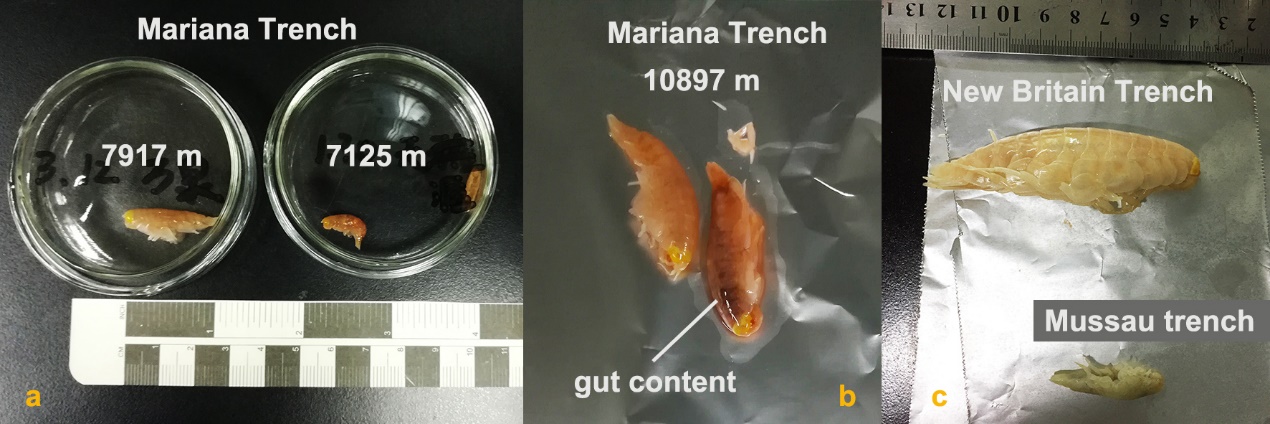 采自海溝的鉤蝦樣品,其中來自新不列顛的鉤蝦體長近10厘米