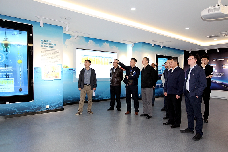 在海洋人工智能與大數據中心,殷皓館長一行通過交互式觸控屏了解了中心的主要數據來源以及科考船、浮標、潛標的實時數據獲取,考察了海洋數據可視化演示系統,調研了中國科學院海洋科學考察船隊、海洋綜合立體觀測網絡、全球氣溫變化、中國近海海洋數值模擬在海洋災害預警預報方面應用成果情況。