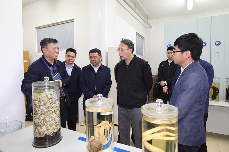 在中科院海洋生物標本館深海樣品庫,殷皓館長一行調研了海洋所近年來在西太平洋獲取的深海大型生物、巖石樣品及圖像、視頻資料,了解了海洋所在深遠海科考能力建設及探測研究方面取得的重要進展。