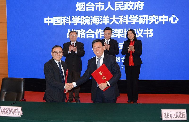 5月7日,中國科學(xué)院海洋大科學(xué)研究中心和煙臺市人民政府戰(zhàn)略合作簽約儀式在煙臺舉行,煙臺市委副書記、市長陳飛,山東省海洋局副局長姜清春,山東省科技廳海洋科技處處長孫高祚,中科院沈陽分院副院長馬越紅,中科院海洋所/煙臺海岸帶所所長王凡出席簽約活動。陳飛市長和王凡所長分別代表雙方致辭,海洋所/煙臺海岸帶所常務(wù)副所長楊紅生和煙臺市副市長張代令分別代表雙方簽約。煙臺海岸帶所黨委書記、海洋所/煙臺海岸帶所副所長高玲瑜,黨委副書記、紀(jì)委書記王曉斌,以及煙臺市有關(guān)市直部門負(fù)責(zé)人,海洋所、煙臺海岸帶所相關(guān)部門負(fù)責(zé)人參加簽約活動。