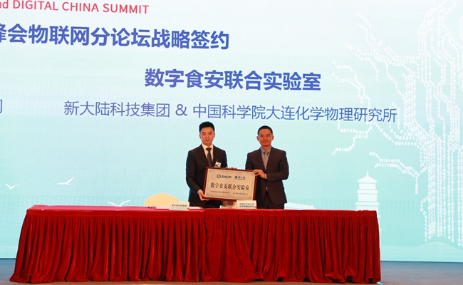5月7日,中國科學院大連化學物理研究所受邀參加第二屆數字中國建設峰會,大連化物所副所長蔡睿在物聯網分論壇上代表大連化物所與新大陸科技集團簽訂共建“數字食安聯合實驗室”戰略合作協議。