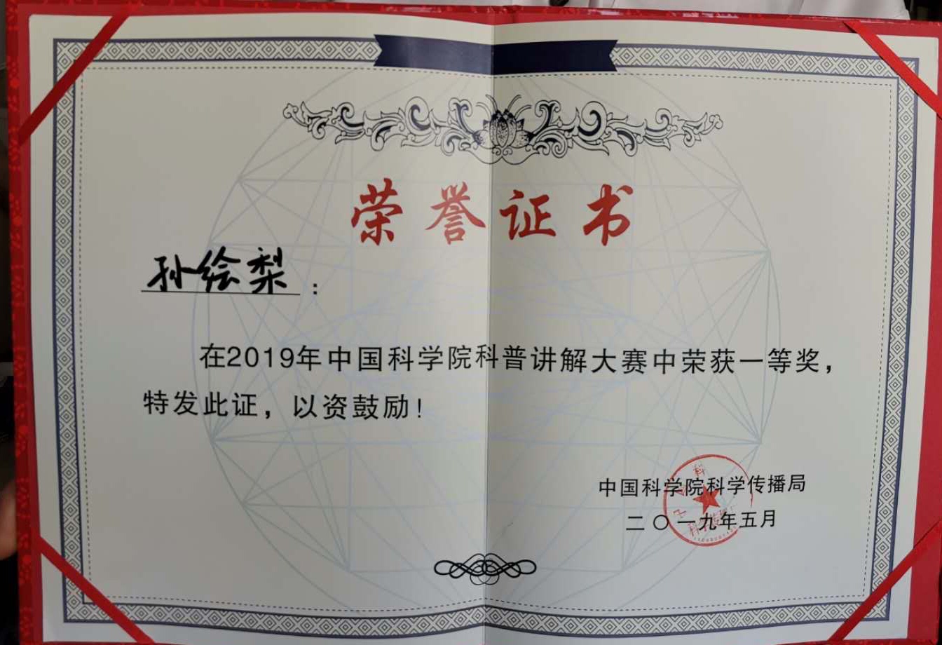5月6日-8日,2019年度中國科學院科普講解大賽暨全國科普講解大賽選拔賽在中科院武漢植物園舉行,來自院屬各單位的49位科學達人同臺競技,最終決出一等獎3名,二等獎3名,三等獎6名。研究所微生物代謝工程研究組孫繪梨博士研究生和單細胞中心陳榮澤博士研究生代表我所參賽,通過半決賽、決賽角逐,孫繪梨以優異的表現脫穎而出,以全場第一名96.7 分的成績榮獲中國科學院科普講解大賽一等獎并晉級全國科普講解大賽。