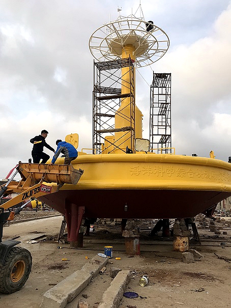 06號浮標為直徑10米海洋觀測浮標系統,已在海上穩定運行近7個年頭。2009年8月首次布放于浙江舟山嵊山島以東海域,搭載了海洋氣象、水文和水質傳感器;2012年10月和2016年05月先后完成兩次周期性大修,浮標一直運行穩定,持續獲取長序列、高質量的觀測數據。通過此次大修,06號浮標將持續進行海上觀測數據的獲取,繼續為近海海洋科學觀測研究做出貢獻,為當地氣象預報、防災減災和漁業發展等提供可靠的數據基礎保障。