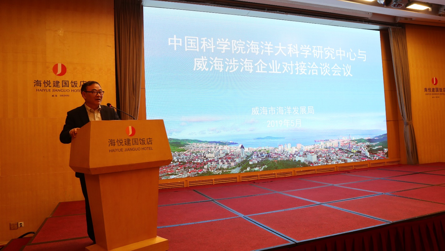 5月8日,中國科學院海洋大科學研究中心科技成果精準對接交流會在威海舉行,中科院海洋大科學研究中心籌建組副組長、海洋所/煙臺海岸帶所常務副所長楊紅生,威海市海洋發展局局長、黨組書記邢海文,中科院沈陽分院科技合作處副處長、山東綜合技術轉化中心常務副主任王東升出席交流會。海洋大科學研究中心相關團隊、威海市海洋發展局及相關區縣有關部門負責人、涉海骨干企業負責人等60余人參加活動。會議由威海市海洋發展局調研員、黨組副書記王傳良主持。