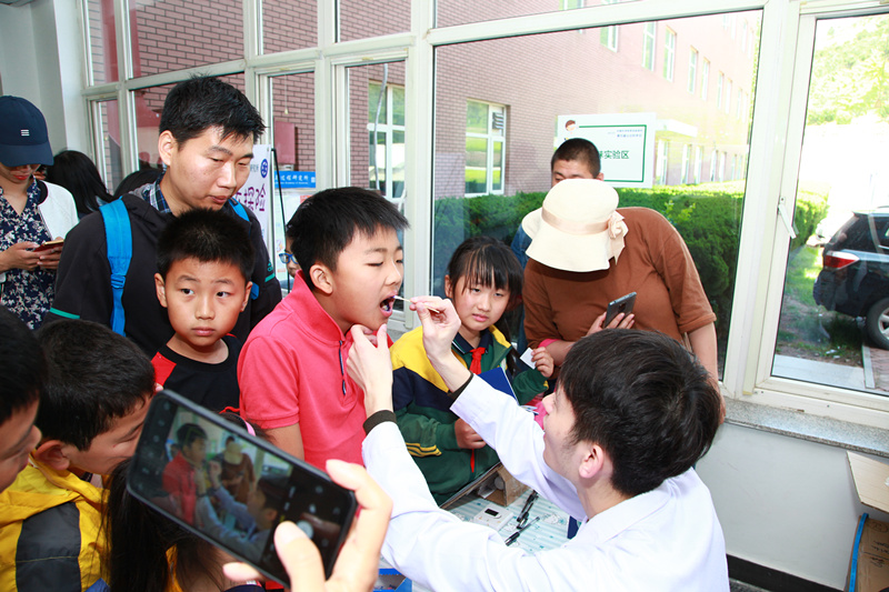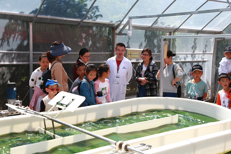 在“科學游園會”環節,各研究組認真準備了各類科學小實驗,內容涉及生物、化學等各種科學知識,共有包括“動態甲醛吸附材料”、“植物的‘影分身術’與‘七十二變’”、“與你一生相伴的牙菌‘魔’和‘天使’”、“納米纖維素的‘魔法變身’”、“‘金谷棒’勇闖‘火焰山’”、“‘膜’法用水之道”、“螺旋藻俠的‘寶藏王國’”等近30個實驗。這些科學小實驗結合了研究所的特色研究成果,直觀形象,互動體驗性強,參觀過程中,大家不時提問并動手操作,感受科學帶來的樂趣和成就感。