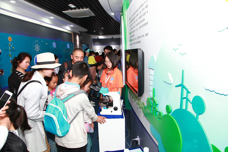 在“科學大家談”環節,環境資源化與水回用研究組研究員張楊、微生物代謝工程研究組副研究員王瑋華分別以《你身邊的“膜”法故事》、《小小微藻,跨越海洋飛向太空》為題做了兩場科普報告。張楊用圖文并茂的形式介紹了什么是“膜”及“膜”的用途—“膜”法潔凈水與空氣、“膜”法穿戴、“膜”法治病、“膜”法發電,讓公眾了解了“膜”的神奇故事。王瑋華從微藻的起源、種類、優點展開,以通俗易懂的語言闡述了微藻如何實現從海洋“飛向”太空。“科學大家談”受到了社會公眾的熱烈歡迎,并就感興趣的問題與科研人員進行了探討和交流,積極互動,現場氣氛活躍。“少年愛科學”環節是本次活動的一大特色。為體現科普工作對青少年創新能力培養的影響,研究所首次邀請了科研人員子女代表—市北二實驗初中學生崔浩然以及共建創新實踐基地合作單位—青島二中高一學生王源海來所現場做科學展示。崔浩然及同伴帶來了“奇妙的化學蠕蟲”、“有趣的泡沫”、 “利用化學反應吹氣球”科學小實驗,王源海及同伴向公眾展示了自行研制的全新抽水裝置,該環節引發了公眾的極大興趣,現場熱鬧非凡。