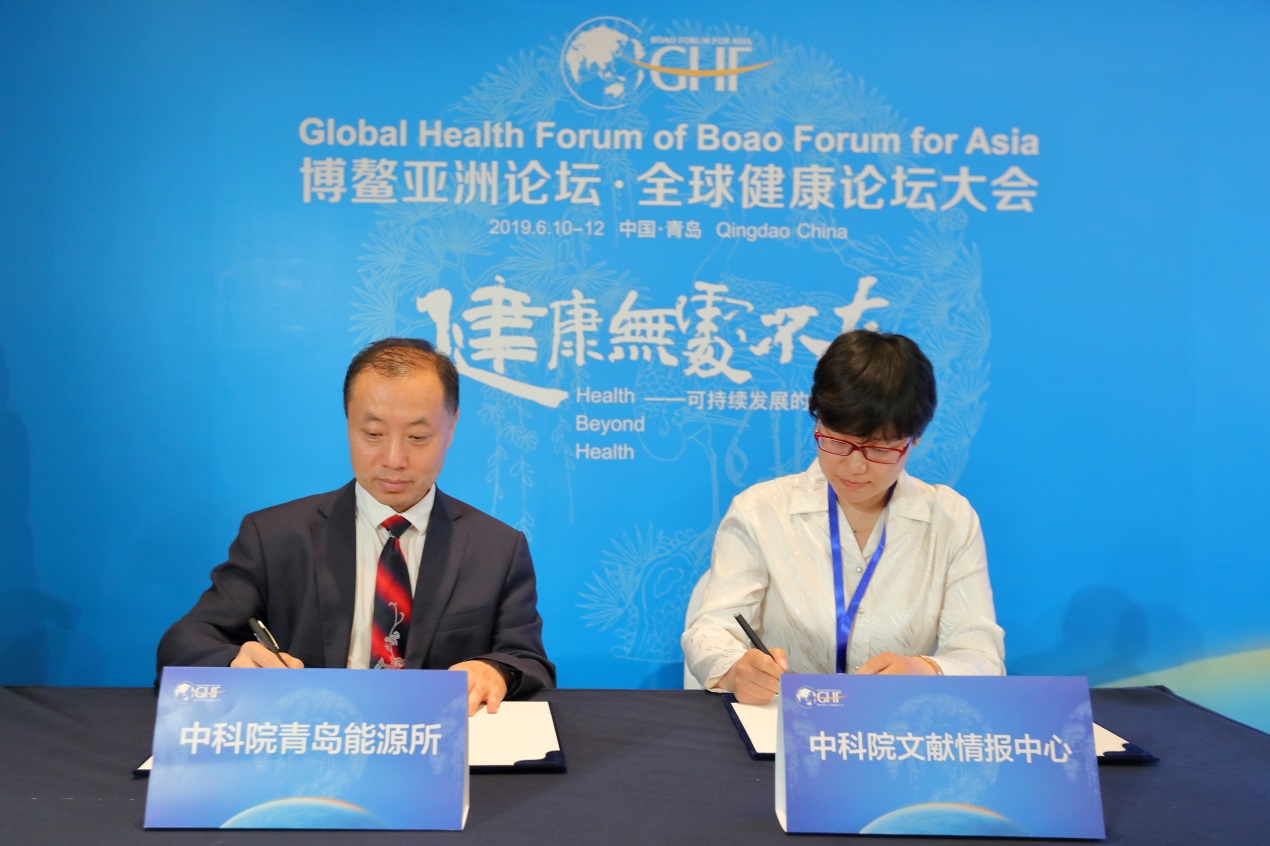 6月11日,在博鰲亞洲論壇全球健康論壇大會期間,青島能源所與中國科學院文獻情報中心簽署戰略合作協議,雙方將共同籌建“微生物組數據科學聯合實驗室”。協議由青島能源所黨委副書記馮埃生與文獻情報中心主任助理張冬榮共同簽署。博鰲亞洲論壇秘書長李保東、山東省副省長孫繼業、青島市市長孟凡利、副市長薛慶國等領導和嘉賓見證簽約儀式。