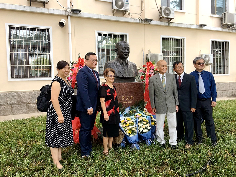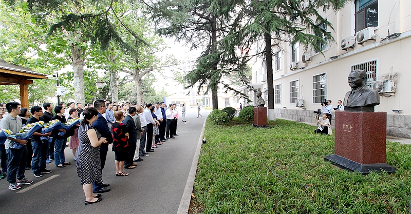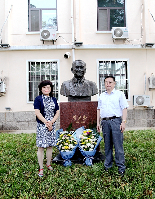 向曾呈奎院士雕像獻花