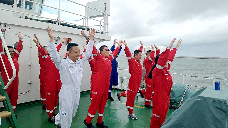 此外,正在海上執行科考任務的“科學”號、“科學三號”、“創新二號”三條科考船組織全體船隊員同步進行了海上廣播操比賽。