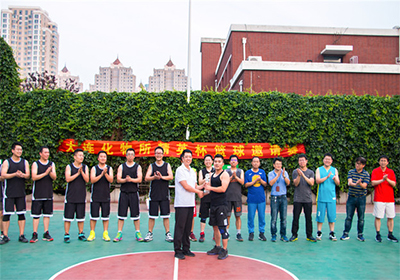 在激烈而又歡樂的籃球賽結束后,大家在籃球場舉行了簡短的閉幕頒獎儀式,兩隊隊員互相握手言歡,并合影留念。