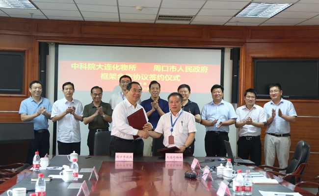 劉中民指出,周口市歷史文化悠久,是我國農業大市,具有豐富的生物質等資源;結合周口市發展規劃,大連化物所將與周口市政府及相關企業開展廣泛合作,助力周口市經濟發展。丁福浩表示,大連化物所科研實力雄厚、科技成果豐碩,周口市政府將加快推動大連化物所先進技術成果在周口市轉化落地。會上,雙方簽署了“周口市人民政府-中國科學院大連化學物理研究所”合作框架協議。