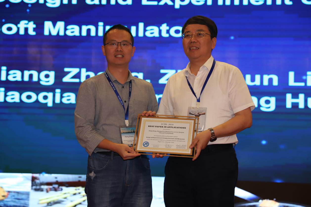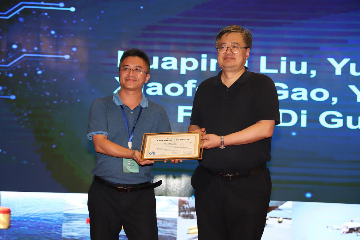 于海斌為最佳機(jī)器人論文獎(jiǎng)?lì)C獎(jiǎng)