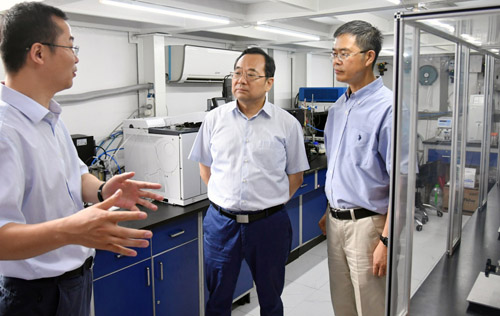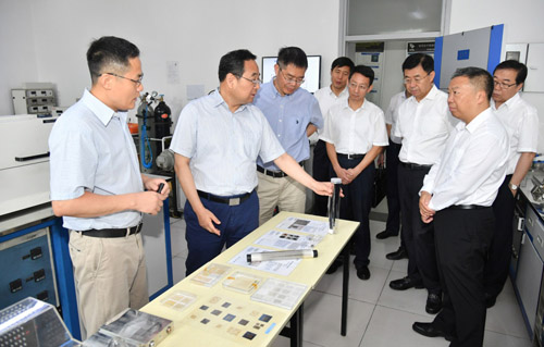 張雷書記先后參觀了石墨烯制備實驗室、光解水制氫實驗室、太陽能電池實驗室,并與金屬所領導和成會明院士團隊等進行了座談。