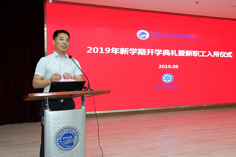 8月22日,海洋所舉行2019年研究生開學典禮暨新職工入所儀式。黨委書記王輝、常務副所長楊紅生、所長助理于仁成、研究生導師代表以及近二百名新入所職工和研究生參加儀式。研究生部主任張利永主持儀式。