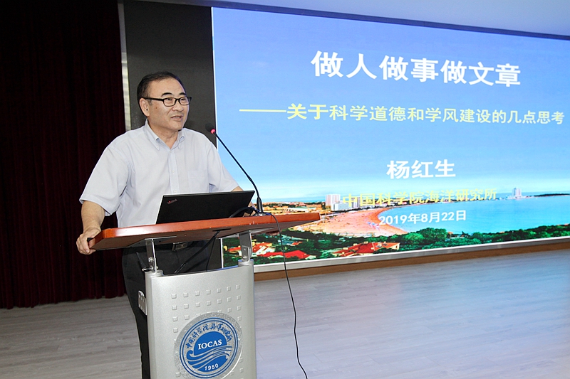 8月22日,海洋所舉行2019年研究生開學典禮暨新職工入所培訓。作為活動的重要內容之一,常務副所長楊紅生研究員為新入所職工和研究生作了題為“做人做事做文章”的科研道德與學風建設專題報告。