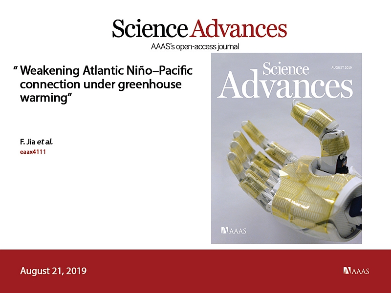 8月21日,Science子刊Science Advances以Article形式在線發表了題為Weakening Atlantic Ni?o-Pacific connection under greenhouse warming (《溫室氣體增暖背景下大西洋尼諾-太平洋遙相關減弱》)的最新研究成果,首次揭示了熱帶大西洋-太平洋跨海盆相互作用的未來變化。中科院海洋所海洋環流與波動重點實驗室賈凡副研究員為文章第一作者,澳大利亞聯邦科學與工業組織(CSIRO)蔡文炬教授和中國海洋大學吳立新院士為共同通訊作者。