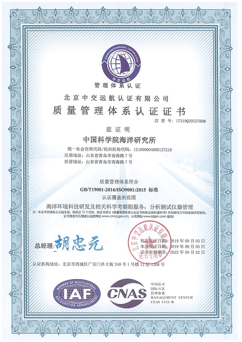 ISO9001質量管理體系認證證書作為研究所重要的資質文件之一,對規范管理以及提高管理質量有重要推動作用。國務院印發《關于加強質量認證體系建設促進全面質量管理的意見》以來,海洋所高度重視質量管理工作,不斷完善相關規章制度,推進創新管理,為研究所海洋科研活動的順利開展提供了有力保障。