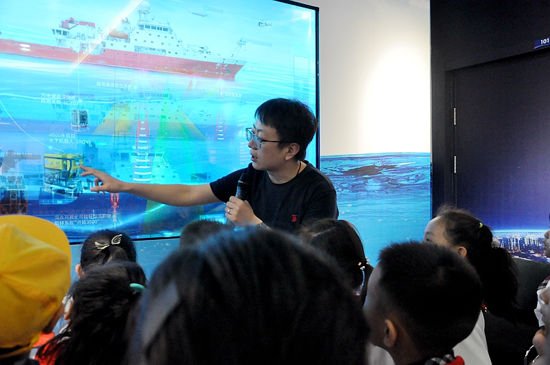 在海洋人工智能與大數據中心,科研人員用深入淺出的講解語言,使用多媒體的形式向同學們介紹了海洋人工智能與大數據在海洋科學研究中的應用,展示了“發現”號ROV在深海科考時拍攝的高清視頻,激發了同學們對海洋學習的強烈興趣。