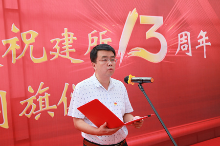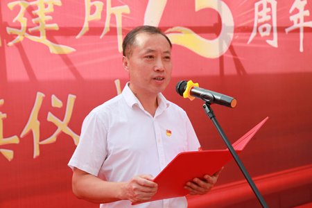 黨委書記彭輝在儀式上致辭,他說:十三年前的今天,中科院、山東省、青島市三方簽署共建協議,開啟了青島能源所的建設。回顧過去,在三屆所領導班子、黨委的團結帶領下,研究所廣大職工學生齊心協力,奮發圖強,聚焦新能源與先進儲能、新生物、新材料領域,為國家和區域經濟社會發展作出了重要貢獻。十二五、十三五期間科研成果取得重大突破,平臺建設、人才隊伍、成果轉化、基建投資等奠定了堅實基礎,形成了“格物致知、篤志行遠”的所訓文化。當前我們正積極謀劃十四五規劃,積極推動中科院潔凈能源創新研究院(青島)建設,特別是今年6月17日,山東省、中科院、青島市三方簽署協議,確定以我所為依托單位,共同籌建山東能源研究院,以滿足山東省新舊動能轉換重大需求,支撐國家能源創新體系建設,使我們又迎來重大發展機遇。面對當前形勢任務,我們青能所人應該再次揚帆起航,戮力同心、砥礪前行,為研究所的發展再次貢獻智慧力量。再過十三天,我們將迎來祖國70年華誕,我們既要歌頌偉大祖國的豐功偉績,同時也要深刻認識到我們肩負的歷史使命和責任。今年也是我院建院70周年生日,中科院作為國家科技創新的國家隊、戰略科技力量,應該始終銘記與踐行科技報國的初心和使命,弘揚老一輩科學家精神,學習繼承他們胸懷祖國、服務人民的愛國精神,勇攀高峰、敢為人先的創新精神,追求真理、嚴謹治學的求實精神,淡泊名利、潛心研究的奉獻精神,集智攻關、團結協作的協同精神,匯聚起科技報國的強大力量。