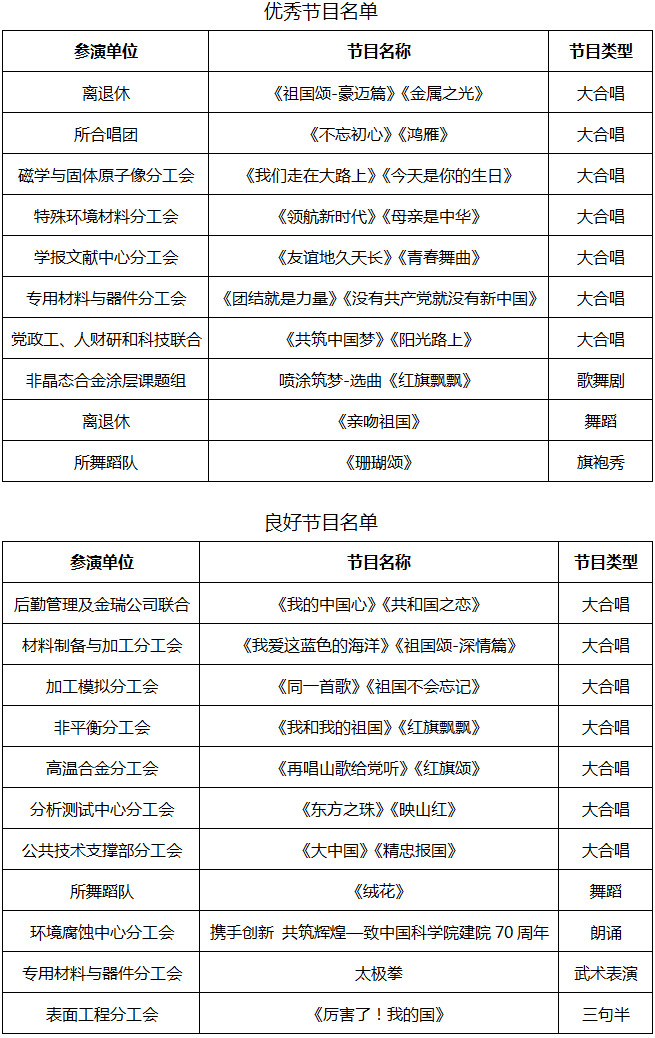 本次文藝匯演的各參演單位認真對待、積極準備,在業余時間,充分利用車間、會議室、廣場等有限的活動場地精心排練,歷時近4個月時間的籌備,最后奉獻了一場熱情澎湃、精彩紛呈的演出。匯演的成功舉辦,充分顯示了金屬所的風采和活力,展現了我所職工團結奮進、銳意進取的精神風貌,進一步提振了士氣,凝聚了人心,鼓舞了斗志,有效地推動我所創新文化建設,激發了廣大職工和研究生愛黨愛國愛院愛所情懷。