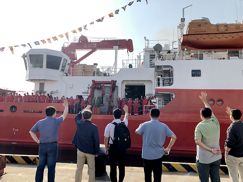 胡敦欣院士、王凡所長(zhǎng)等與科考隊(duì)員揮手告別