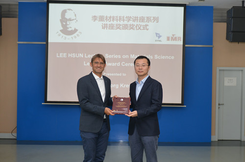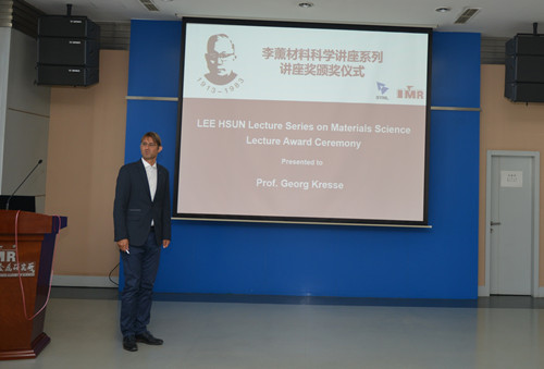來訪期間,Georg Kresse教授為我所科研人員和研究生作了題目為“Ab initio quo vadis: first principles calculations now and in the future”的學(xué)術(shù)報告。報告前,劉崗副所長代表金屬所向Georg Kresse教授頒發(fā)了李薰講座獎獎牌,報告和頒獎儀式由陳星秋研究員主持。報告得到了我所科研人員和研究生的積極響應(yīng),報告結(jié)束后,雙方圍繞感興趣的問題進(jìn)行了熱烈討論。