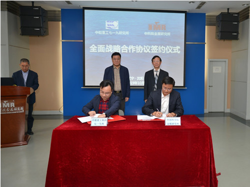 10月17日,我所與中國船舶重工集團第七一九研究所(簡稱中船重工719所)簽訂了全面戰略合作協議。簽約儀式由金屬所副所長孫曉峰主持。